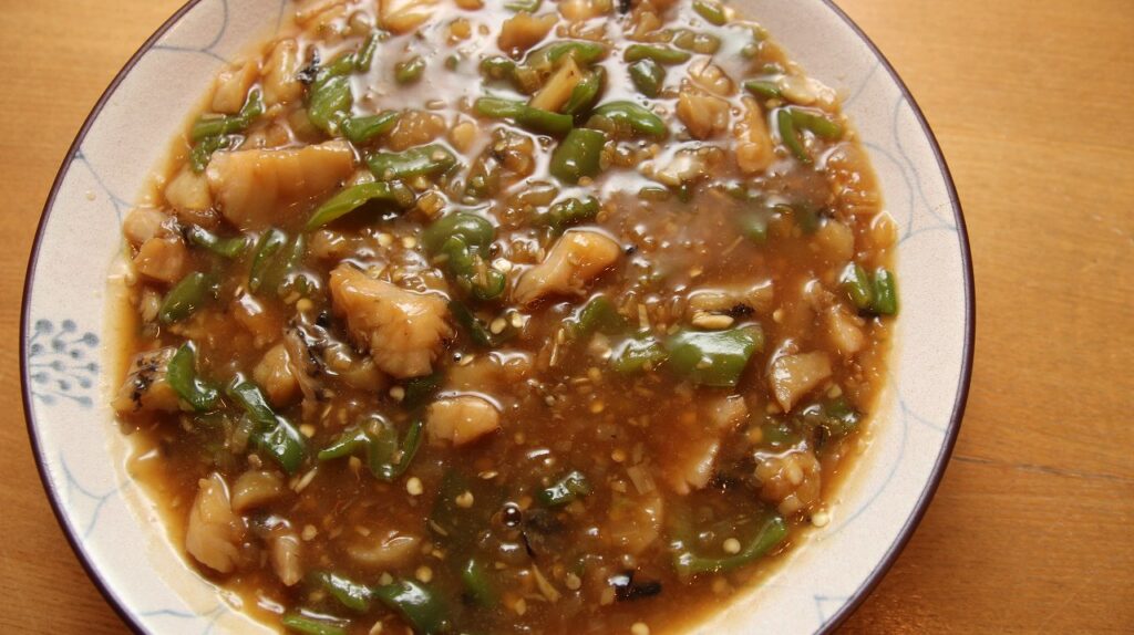 他の魚では炒めている間に身がボロボロになってしまいますが、ブダイは形と食感を保ってくれるので可能になります。豚ひき肉とは違った香りで、代替品ではなく「別の料理」として成立してくれます。お肉を控えている方や、豚の脂が気になる方にもおすすめです。