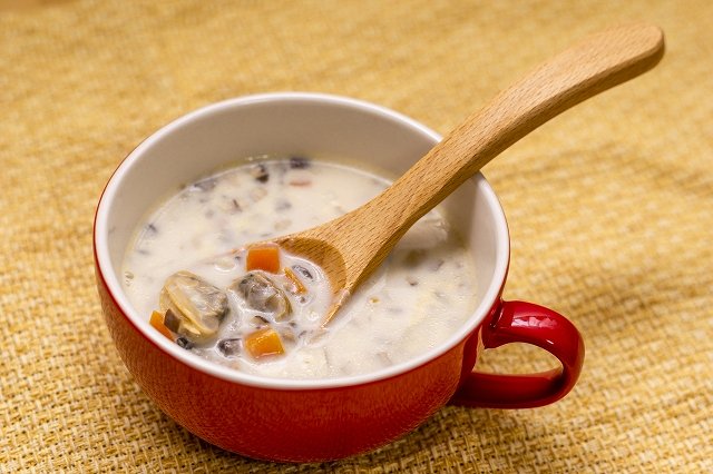 前項でお伝えした「塩抜き」さえ完了していれば、レストランにも負けない極上のクラムチャウダーがご家庭で楽しめますよ。