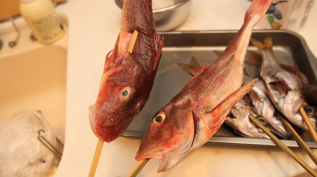 シンプルな塩焼きも、ホウボウの旨味を凝縮させて堪能できる定番の食べ方です。ただし、ホウボウは水分が多めの魚なので、焼き方に少しコツが要ります。