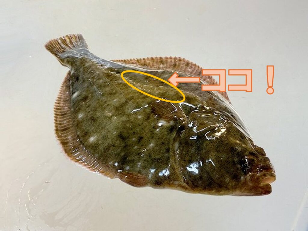 まず石カレイですが、最大の特徴はその名前の由来にもなっている「石」のような硬い骨板です。背中や側線(体の中心線)に沿って、ボコボコとした硬い突起物が並んでいるのが見えますか?これは鱗(うろこ)が変化したものと言われていますが、まるで鎧のように硬く、包丁の刃が欠けるほどです。そしてもう一つの特徴が、通常の魚のような「鱗」がほとんどない代わりに、体全体を覆う「強烈なヌメリ」です。このヌメリは新鮮な証拠でもあるのですが、調理の際には厄介者扱いされることもあります。