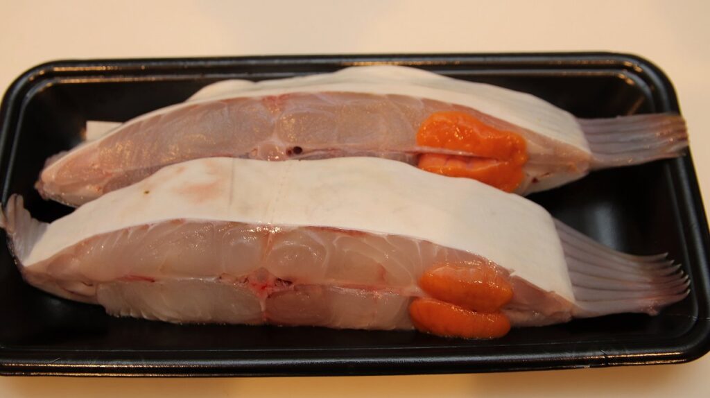 | 脂乗り | 夏の旬には縁側を中心に強い脂が乗る。 ※近年は11月も脂が乗っている場合も。 | 全体的に淡白であっさりしている。身の脂より卵のコクを楽しむ。 |