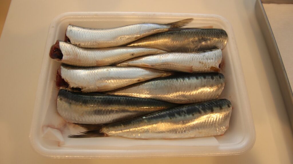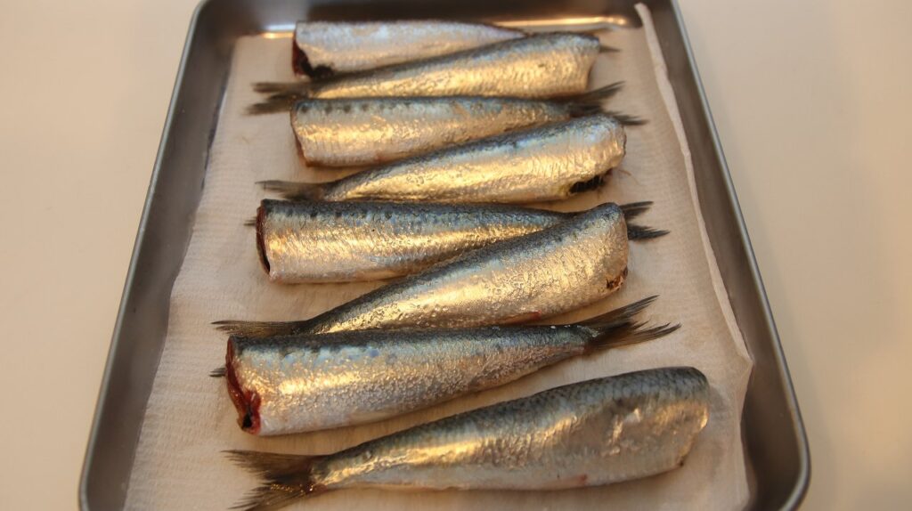 今回は扱いやすい「中羽イワシ」を使用します。(※小羽イワシを使う場合は、10〜12尾くらいに増やして作ってくださいね)