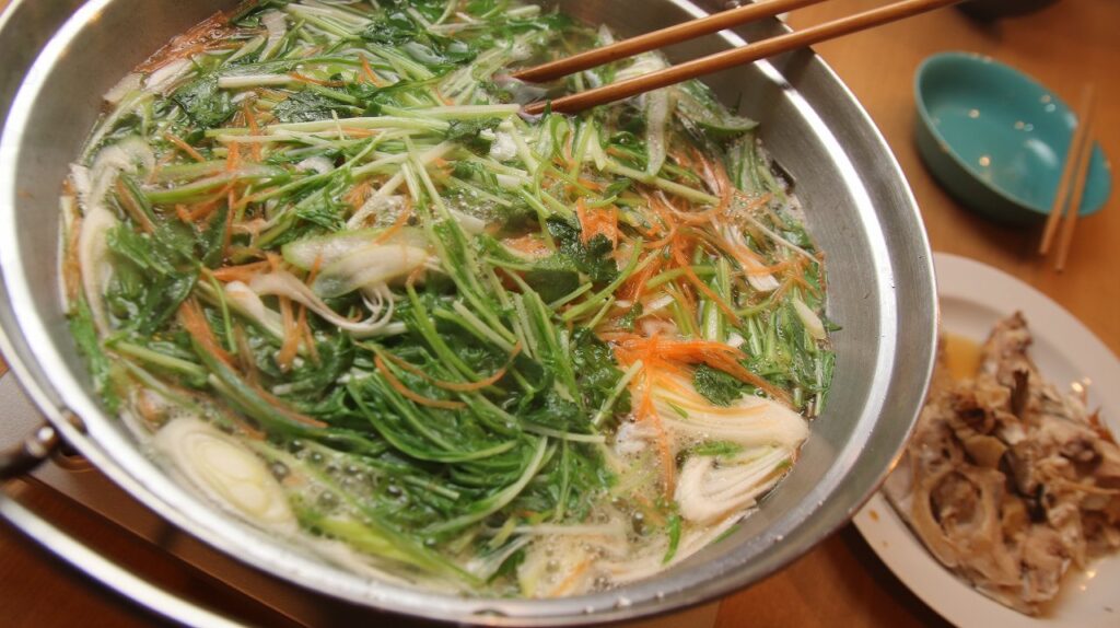 そのまま、鍋の中でしんなりした細切り野菜をたっぷりと巻いて口に運んでみてください。