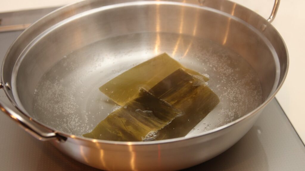 料理本などには「えぐみが出るから、沸騰する前の60〜70度で昆布を取り出す」と書かれていますが、家庭の鍋ではそんなに気にしなくて大丈夫です!
