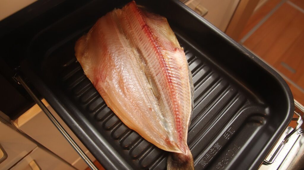 完成した干物を、魚焼きグリルでじっくり焼いていきます。
