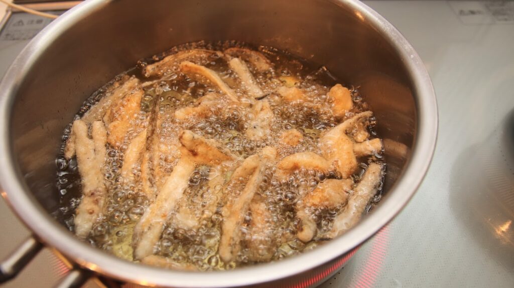 数釣りができて小さいサイズのメゴチがたくさん手に入った場合には、「骨付きの唐揚げ」がおすすめです。