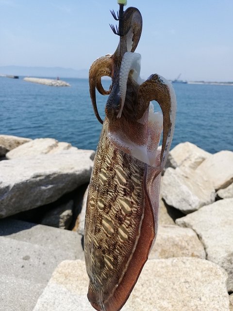 コウイカ類を釣るための絶対条件は、「エギを確実に海底(ボトム)に着底させること」です。海底の砂を巻き上げるようにズルズルとゆっくり引きずる(ズル引き)か、ボトム付近で小さくチョンチョンと跳ねさせては、長めに動きを止める(ステイ)アクションが極めて有効です。アタリ(魚信)の出方も独特で、魚のようにブルブル引くことは少なく、エギを長い腕で抱き込んでその場に居座るため、「竿先が急に重くなった」「海藻が引っかかったかな?」というようなジワッとした重みを感じることが多いです。釣り上げるとプシュッと大量の墨を吐くので、お気に入りの服が汚れないように立ち位置には十分気をつけてくださいね。