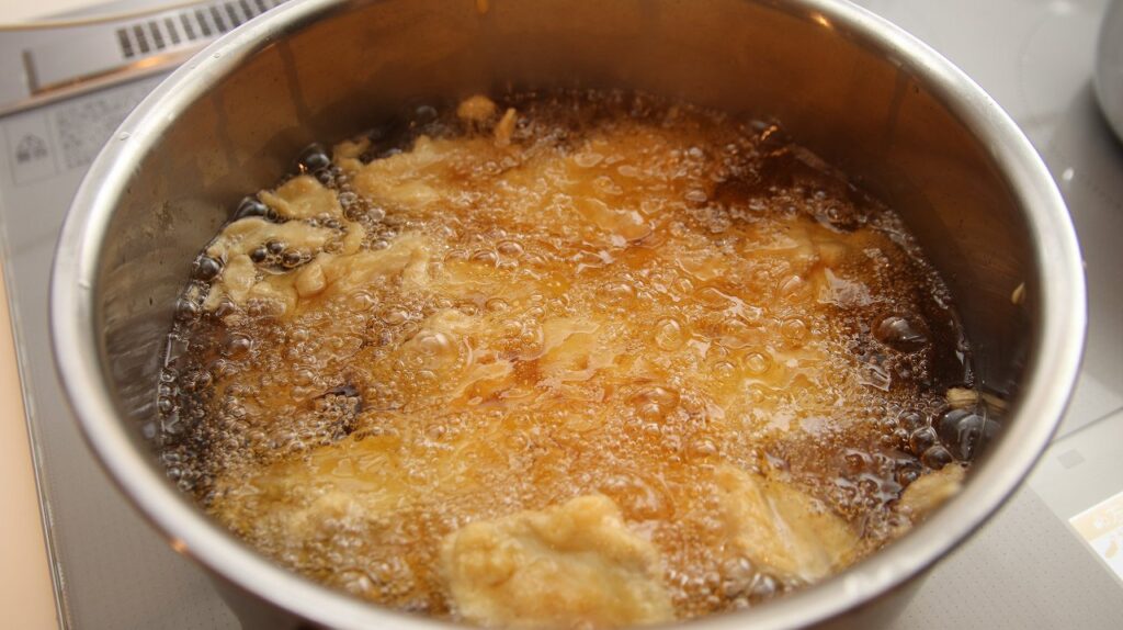3. 【重要】140℃〜150℃の「低温」で揚げる