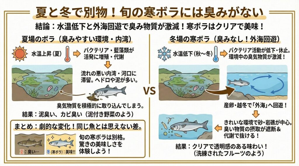 「ボラはまずい、臭い」というイメージは、あくまで過去の記憶や、条件の悪い夏の個体による誤解に過ぎません。