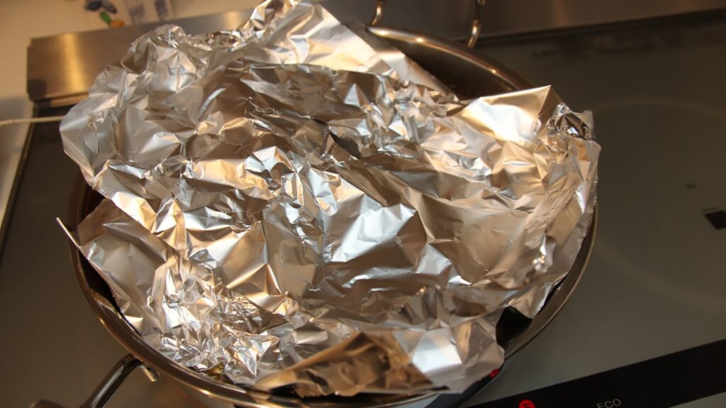 鍋を中火にかけ、煮立ってきたらアルミホイルなどで落し蓋をします。