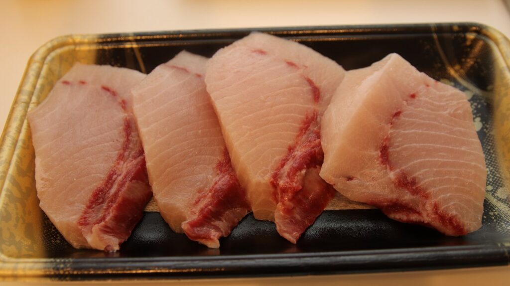 もう一つの手がかりは「皮」です。切り身に皮がついている場合、メカジキの皮は黒っぽく、表面がザラザラとしていることが多いです。一方、マカジキの皮は青黒い色をしており、皮下脂肪の層が見えることもあります。ただし、最近は皮を取り除いた状態で売られていることも多いので、基本的には「白いか、赤いか」で見分けるのが最もシンプルで間違いありません。