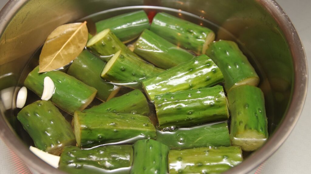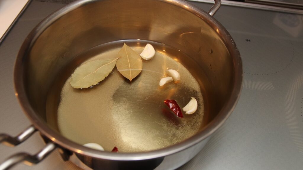 こうすることで、お酢の酸味をまろやかにしつつ、ニンニクや香辛料の風味と香りをピクルス液にしっかり移します。