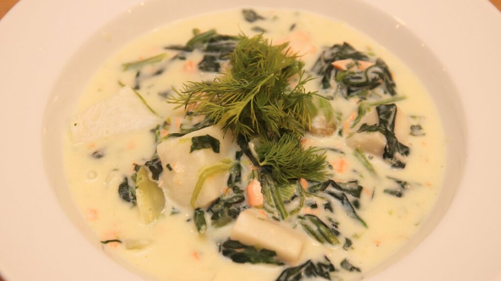 トラウトサーモンは加熱しても身がしっかりしていて崩れにくいので、シチューの具材として最高の相性なんです。