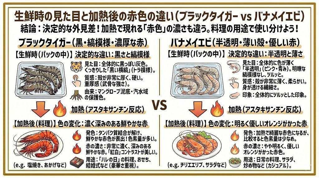 「高いブラックタイガーだから美味しい」「安いバナメイだから不味い」という固定観念は、もう捨ててしまいましょう。それぞれの「得意分野」が違うだけで、どちらも素晴らしい食材です。
