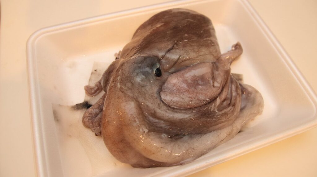 まずは、スーパーで買ってきたパック入りの「生ヤナギダコ」を美味しく食べるための準備から始めましょう。「生」の状態は写真のようにグレーっぽく、表面がヌルヌルしています。