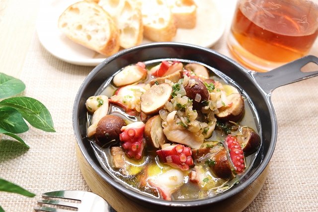 その他、「タコの酢の物」や「アヒージョ」など、食感のコントラストを楽しみたい料理にはマダコが向いています。特にアヒージョのようなオイル煮は、高温の油で煮ても縮みすぎて硬くなりすぎず、程よい弾力を保てるマダコの肉質が活きる料理です。